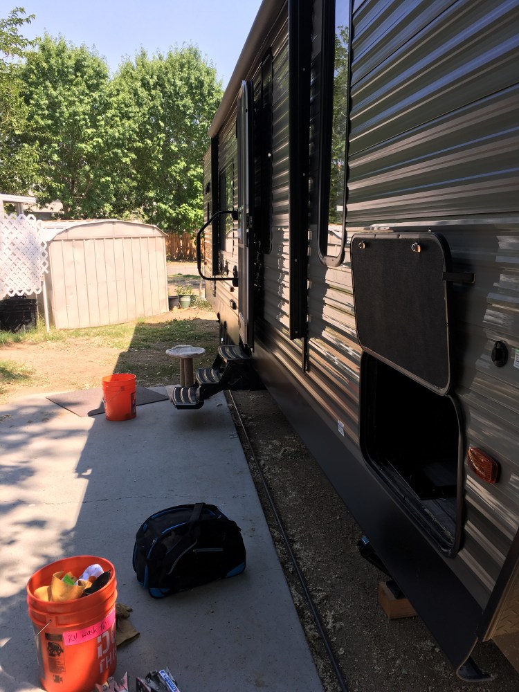 My job was to help get the “arrival” checklist done helping Randy stabilize and make sure we were as even as possible. We did that quickly leaving the pets in the truck with the AC blasting and shade.