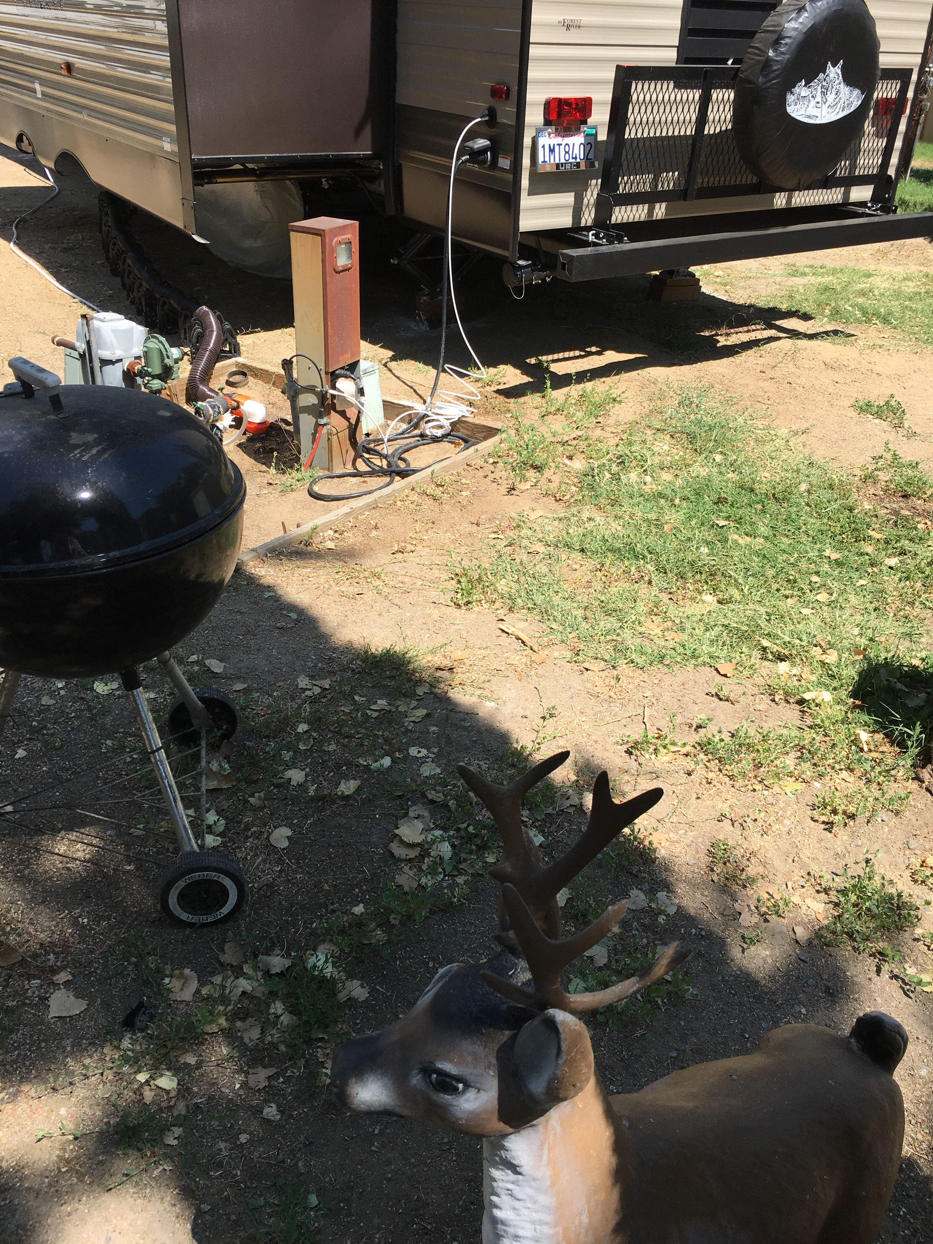 I was next assigned to getting the water set up. Rachel (our Camp Host) mentioned we would have cable but I discovered we did not bring a wire to go from the cable box to our trailer – oh well.