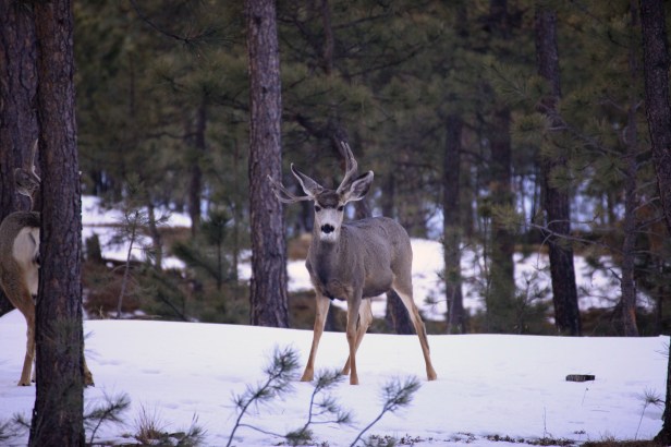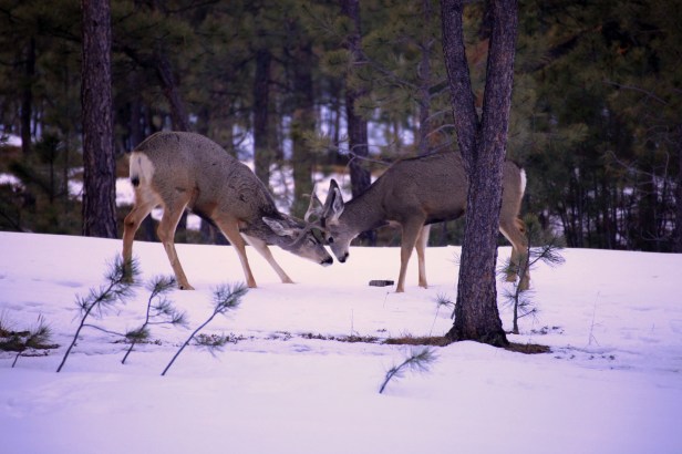 Two sets of boys were knocking antlers. I noticed their little tails were wagging sort of like Kona’s when he’s having fun. So, I’m going to assume they were playing, not fighting.