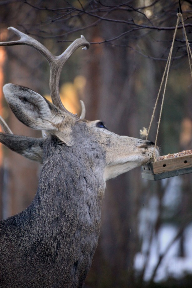 Right next to the house I spotted a GIANT buck. Is it a buck? I don’t know – I need to learn the right words. That’s the one I’m sticking with right now (correct me, I don’t mind).