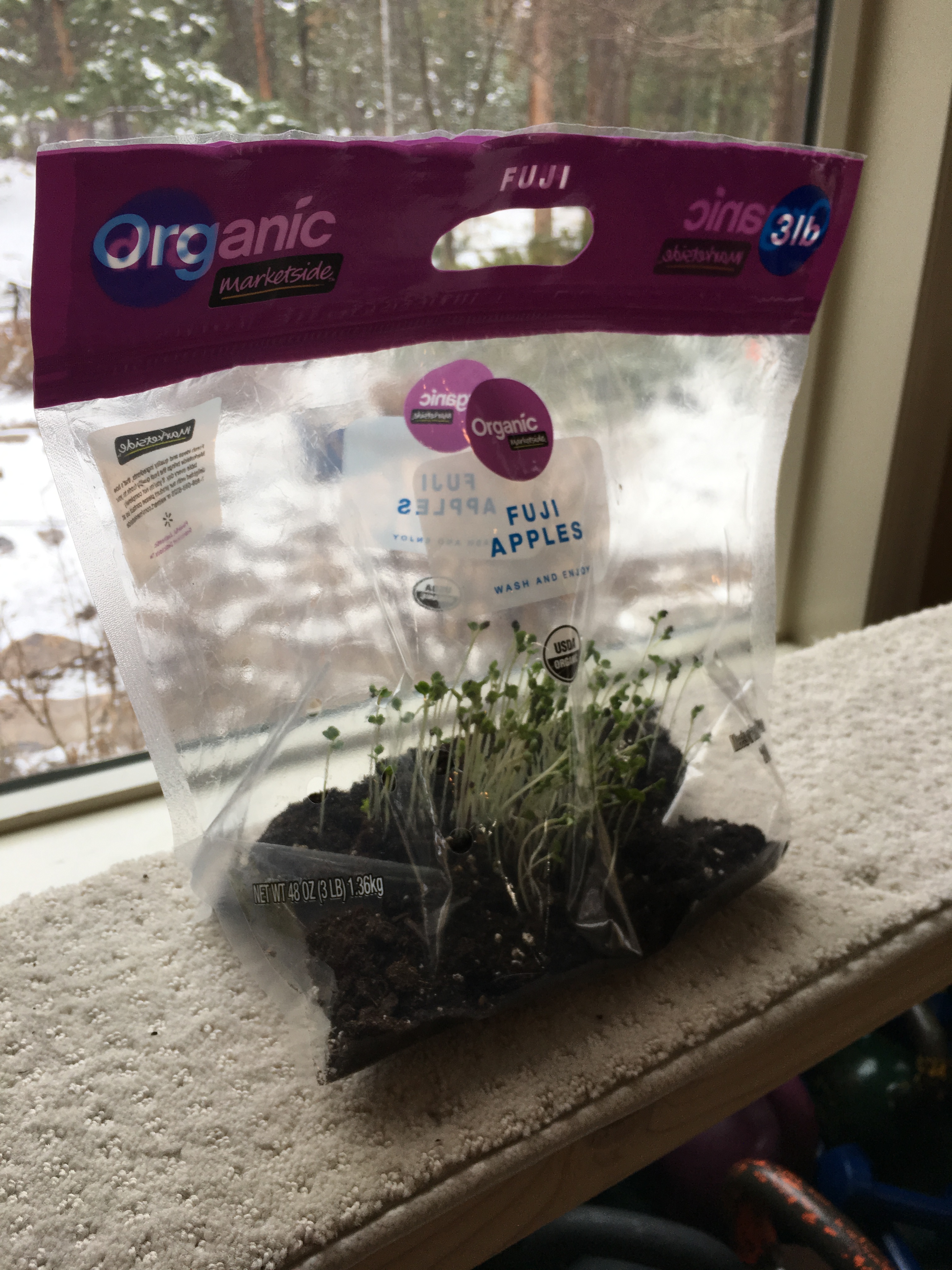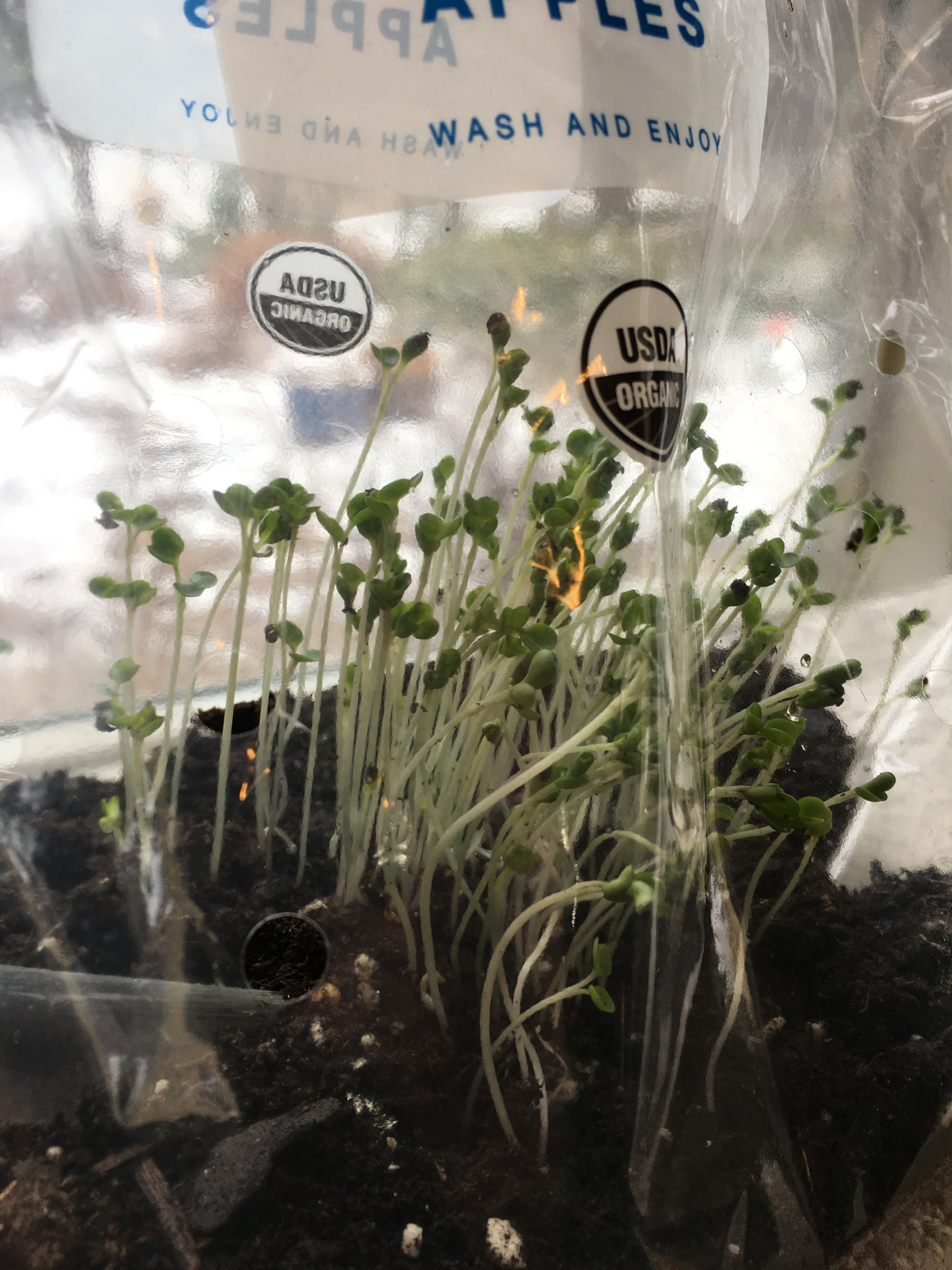 I went out on a limb using my apple bag as a way to start seeds growing for outdoor planting when the weather stops being psycho here.
