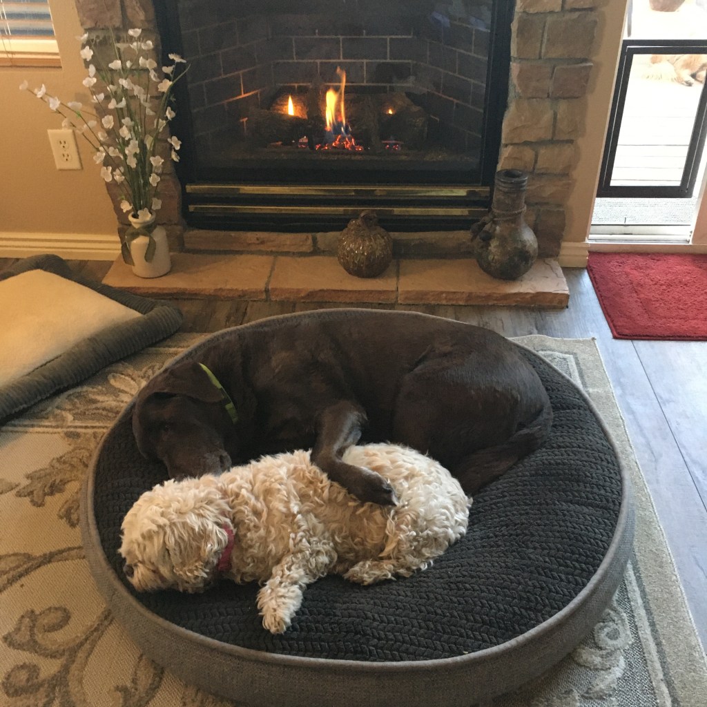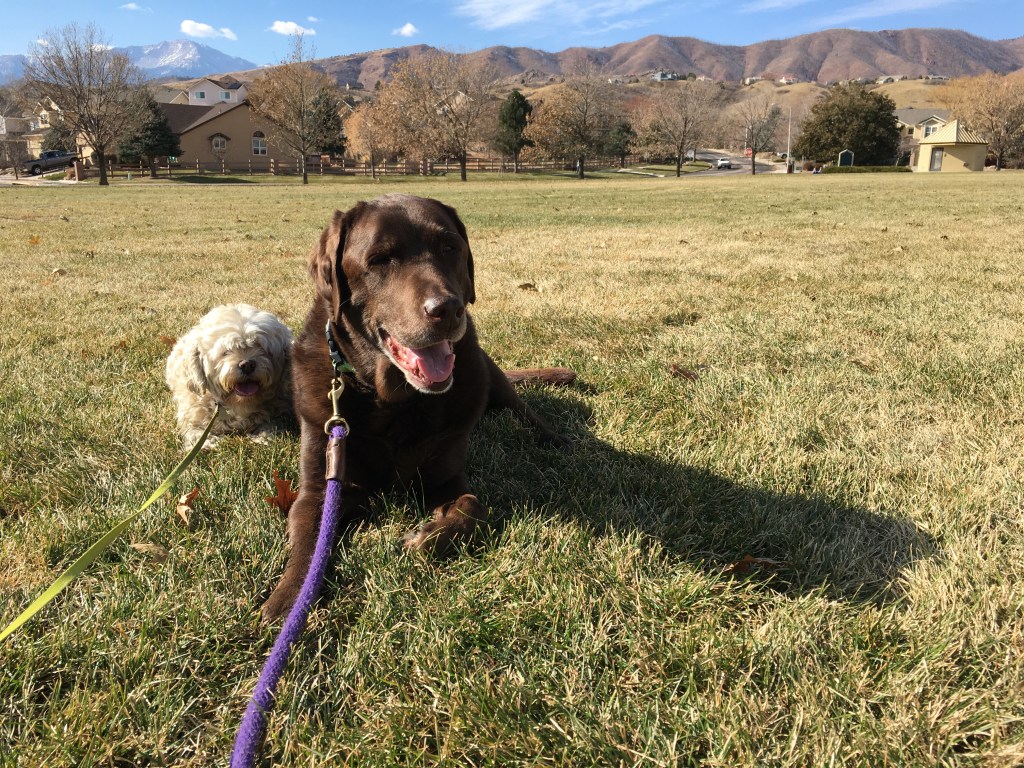 Both dogs walk 30-45 minutes every afternoon at the park. I zig-zag across the grass to give them the enjoyment of NOT CONCRETE, CEMENT, FLOORING…real planet earth between their toes.