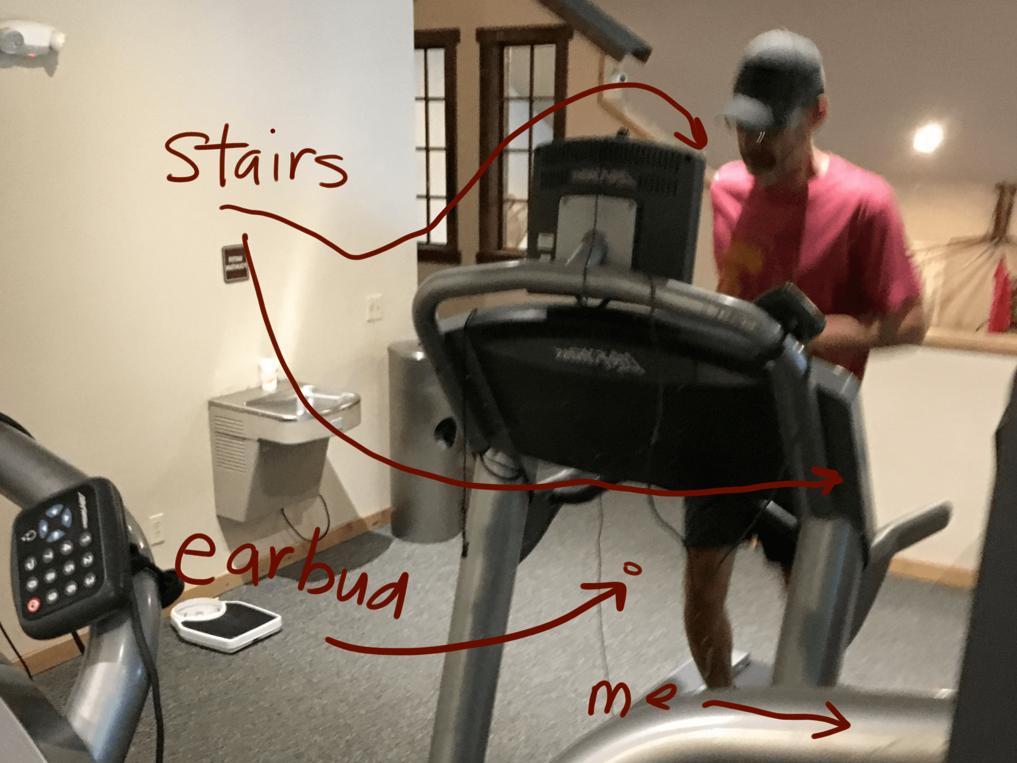 So I reached up to pull the earbud out of my head when it popped off and hit my treadmill bouncing onto the girl’s treadmill next to me.