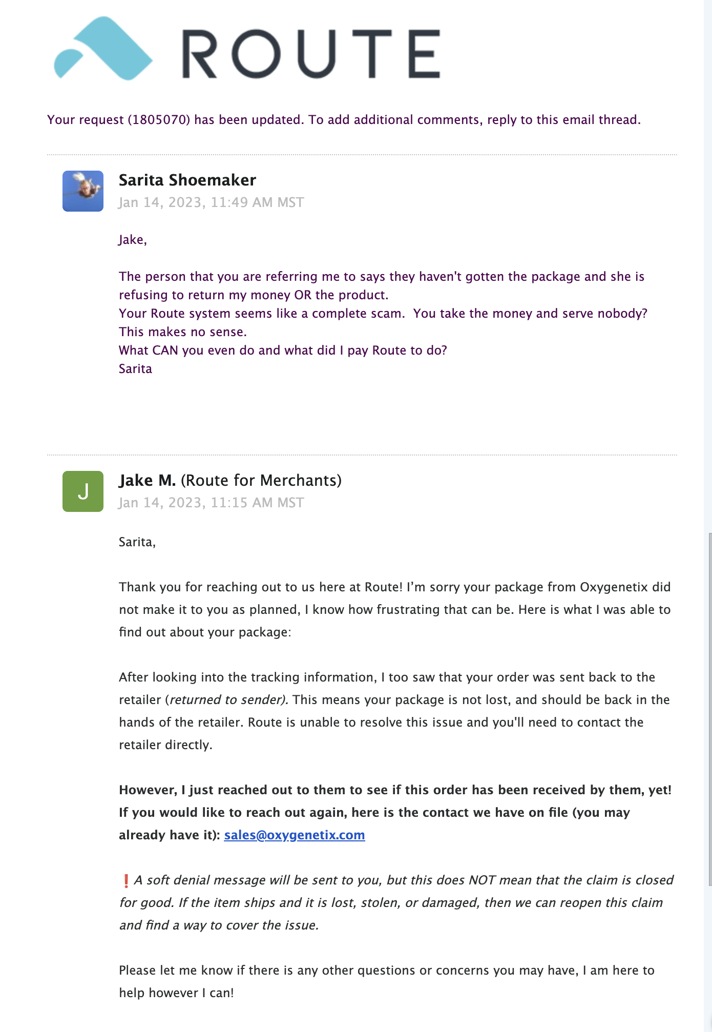 I am filing a complaint as high as I can about Oxygenetix: A California-based company. Ordered on 12/22/22 and have not gotten the products.
